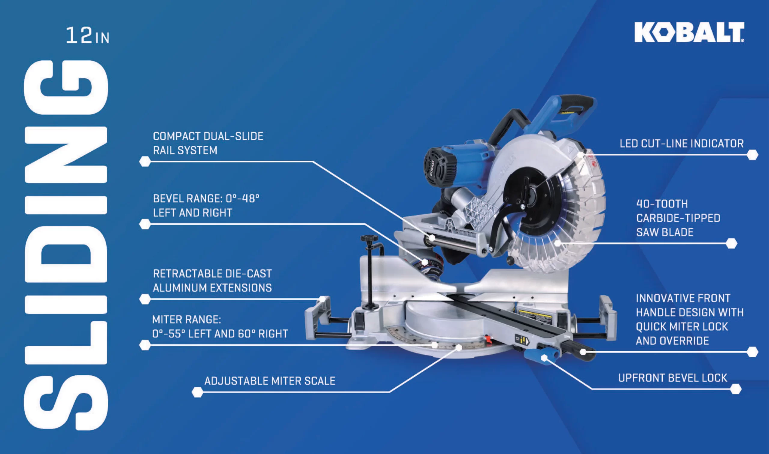 Kobalt Compact 12-in 15-Amps Dual Bevel Sliding Compound Corded Miter Saw