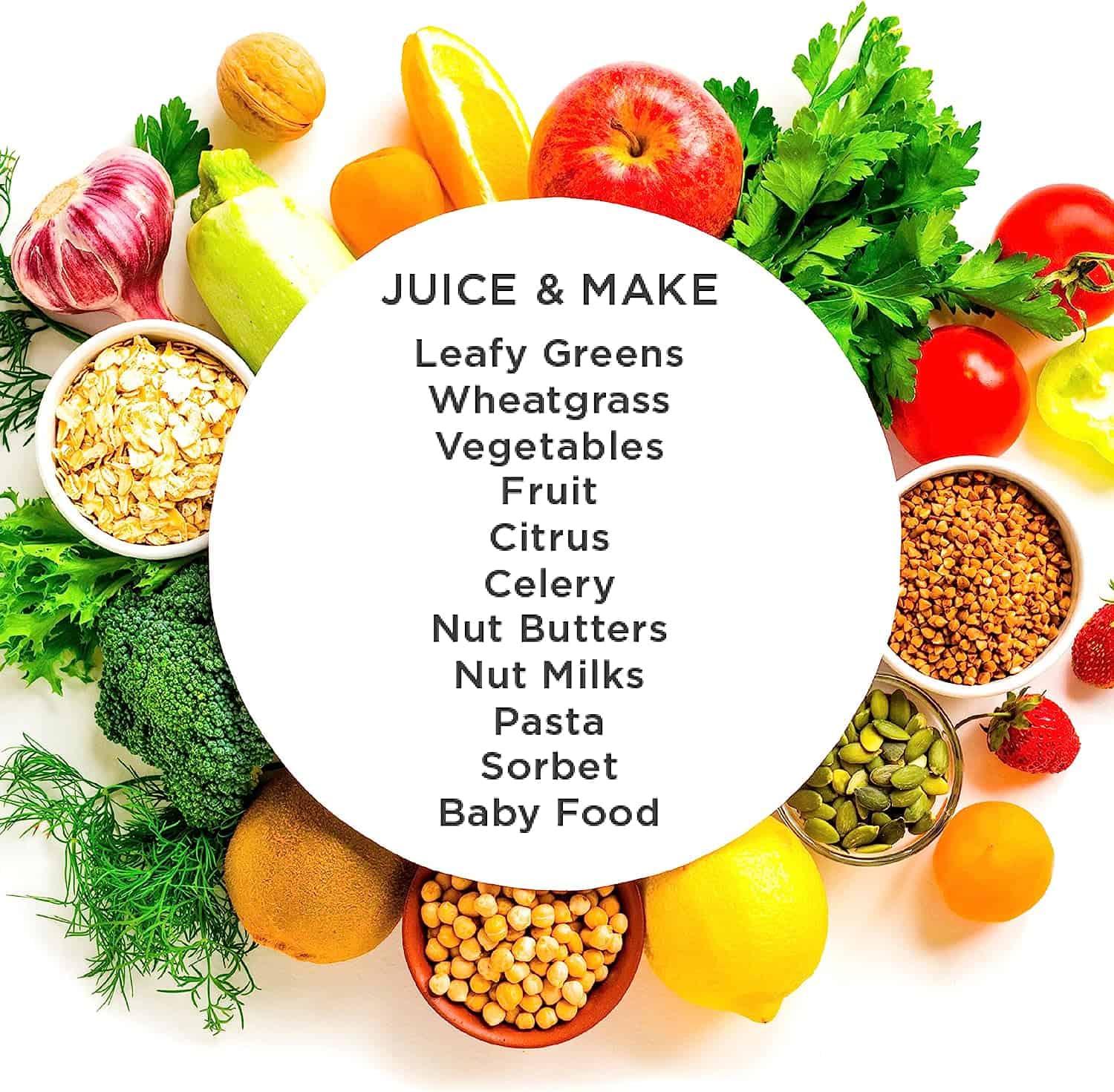 - Nutrition System: Turn nuts into nut butter, extrude pasta, grind coffee and spices, mince herbs and garlic, make baby food and frozen desserts, and quickly whip up soy milk with the help of this versatile electric juicer