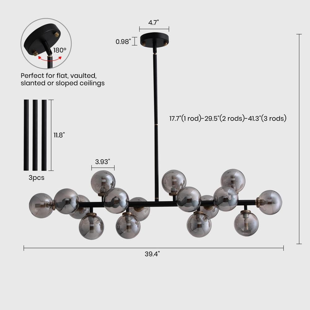 SILJOY 16-Light Black Globe Sputnik Dining Room Chandelier Mid Century Linner Kitchen Island Pendant Light SHLP084BLBR16A